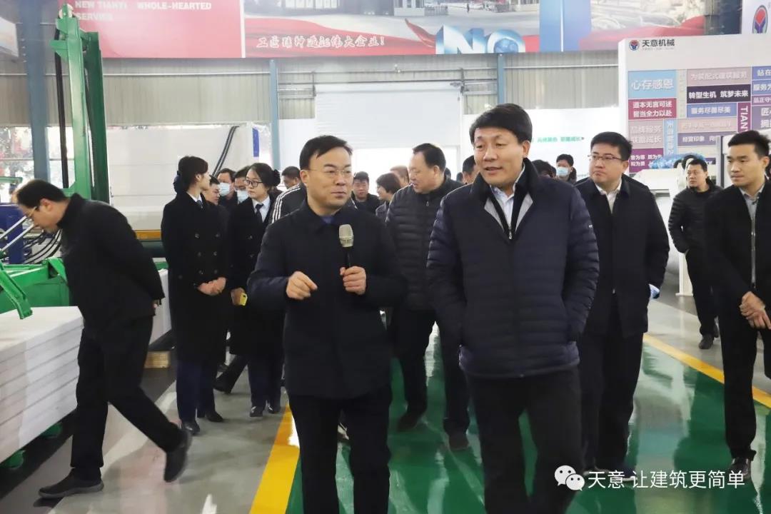 12月18日上午,鄒城市委常委、副市長欒濤一行蒞臨天意考察全市新舊動(dòng)能轉(zhuǎn)換現(xiàn)場(chǎng)觀摩項(xiàng)目——裝配式建筑自動(dòng)化PC生產(chǎn)線項(xiàng)目。兗州區(qū)委常委、區(qū)政府副區(qū)長、黨組副書記屈耀武,天意機(jī)械董事長劉洪彬陪同考察。