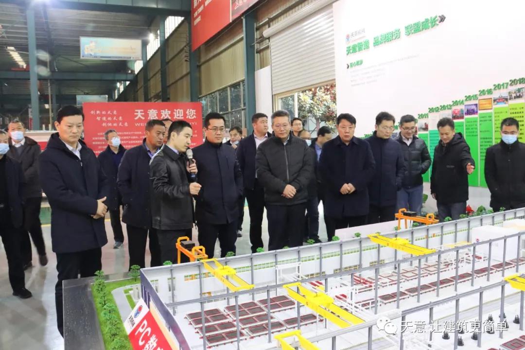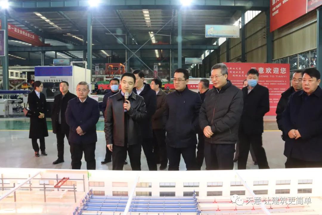 12月19日下午,嘉祥縣委副書記江峰一行蒞臨天意機(jī)械考察全市新舊動(dòng)能轉(zhuǎn)換現(xiàn)場(chǎng)觀摩項(xiàng)目——裝配式建筑自動(dòng)化PC生產(chǎn)線項(xiàng)目。兗州區(qū)區(qū)委副書記寇寧,發(fā)展和改革局副局長(zhǎng)劉守全,天意機(jī)械總經(jīng)理劉海龍等領(lǐng)導(dǎo)陪同考察。