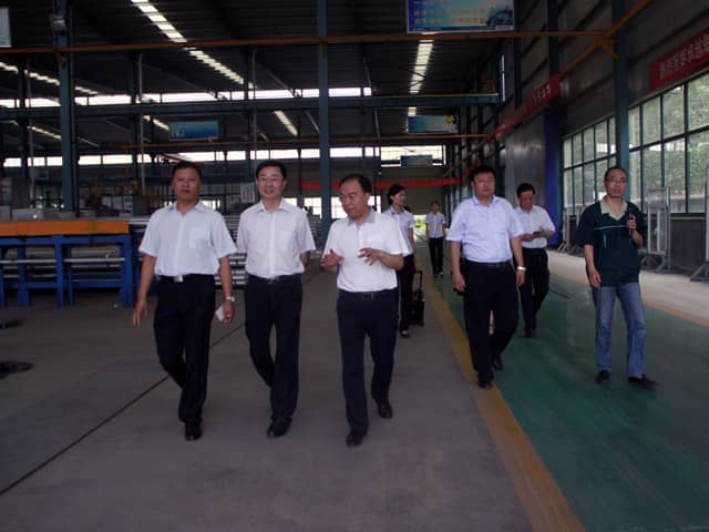 市領(lǐng)導先后參觀了我公司的6A辦公大樓、省級研究中心、體驗館、樣板別墅、集成房屋、設(shè)備生產(chǎn)車間以及鋁型材加工基地。每到一處,市領(lǐng)導都仔細詢問了技術(shù)與生產(chǎn)等相關(guān)問題。