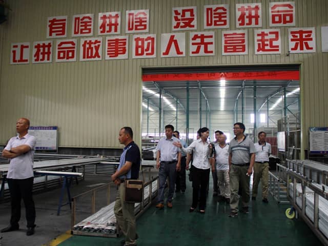 緊接著,參觀了天意樣板別墅、集成房屋、設(shè)備生產(chǎn)車間、鋁型材加工基地。專家領(lǐng)導(dǎo)團(tuán)對(duì)我公司擁有的先進(jìn)助力建筑垃圾廢棄物資源化利用的擠壓墻板生產(chǎn)線給予了高度評(píng)價(jià)。