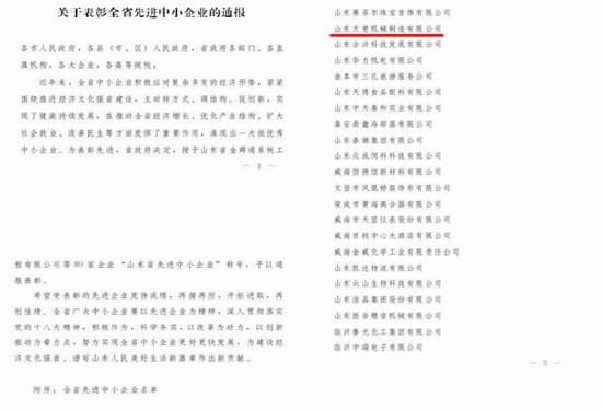 山東天意機(jī)械被評為全省先進(jìn)中小企業(yè)表彰鏈接:http://www.smesd.gov.cn/view/zhongyaotongzhi/315751.html