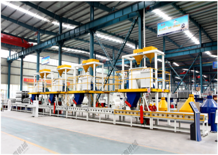 該生產線可生產各種產品,如FSB建筑保溫免拆模板、EPC建筑保溫免拆模板、夾心保溫墻板等,生產線自動化程度高,采用PLC控制系統(tǒng)保證了生產線的穩(wěn)定性,節(jié)省人工,生產效率高,設備配有計量系統(tǒng),結合產品的材料性能使料漿攪拌均勻,能夠很好的將產品復合在一起,從而提高了產品的質量。