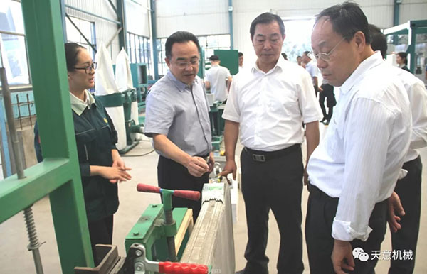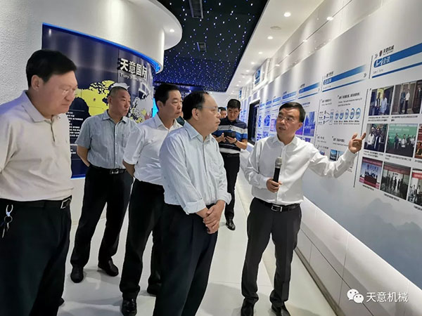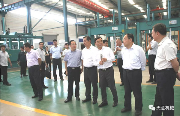 2019年9月23日,濟寧市人大常委副主任陳國華蒞臨天意機械考察指導,區(qū)委書記王宏偉,區(qū)人大常委會主任于立武,區(qū)人大常委會副主任趙廣嶺陪同調研,天意機械董事長劉洪彬陪同各級領導調研考察。